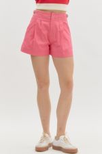 Entro Stitch Pleat Shorts With Buckle Waist In Pink *Final Sale*
