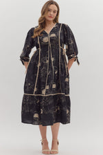 Entro Botanical Print 3/4 Sleeve Midi Dress In Black PLUS Size *COMING SOON*
