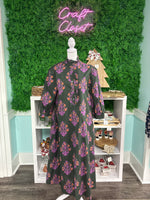 ENTRO Botanical Print 3/4 Sleeve Midi Dress In Dark Olive