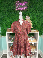 Entro Brown Botanical V Neck Tiered Mini Dress *FINAL SALE*