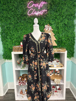 Entro Floral 3/4 Sleeve Midi Dress With Scalloped Trim In Black *FINAL SALE*