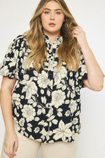 Entro Floral Button Up Puff Sleeve Top In Black PLUS Sizes