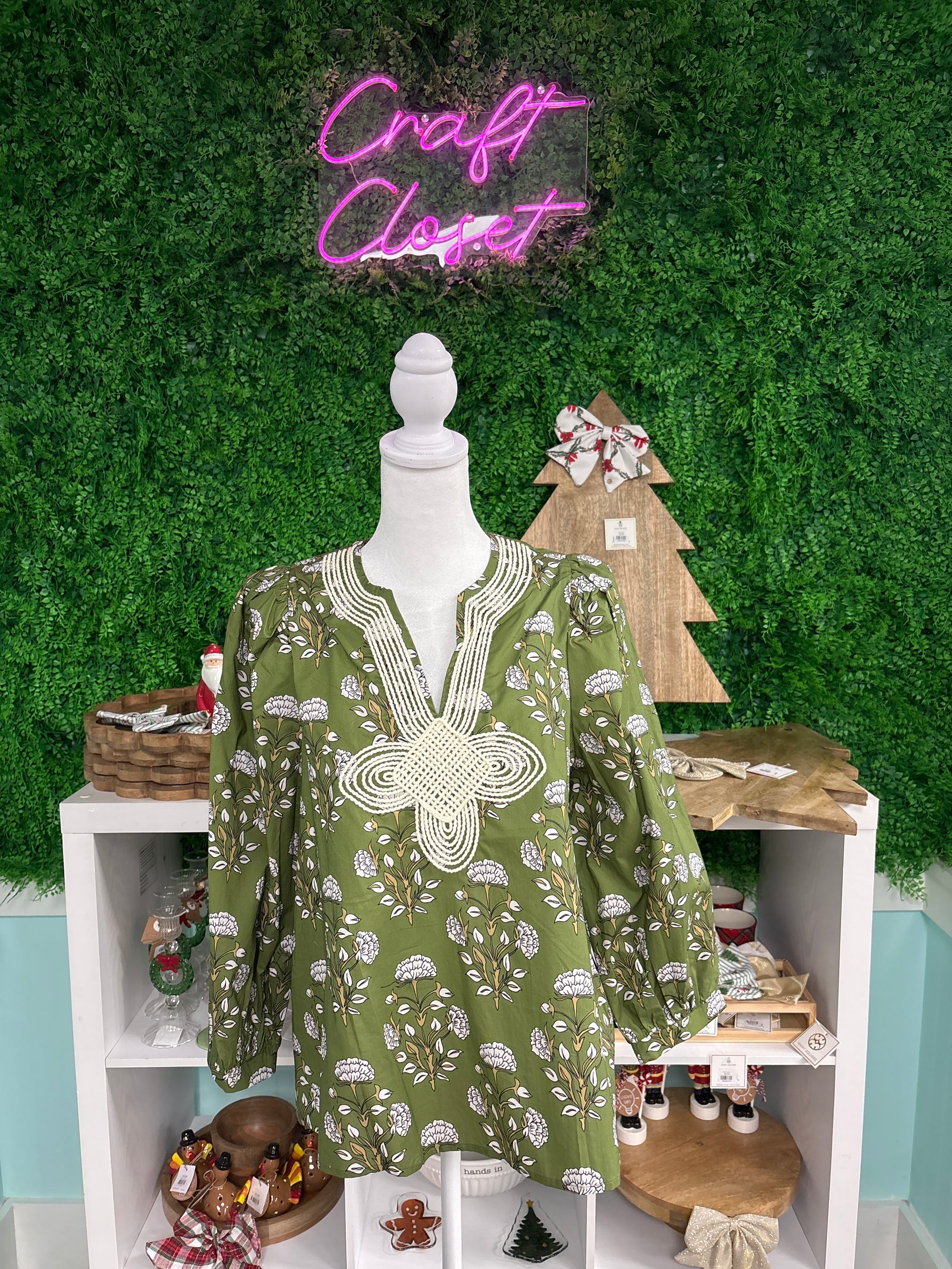 Entro Floral Print Puff Sleeve Top With Knot Trim Detail In Olive