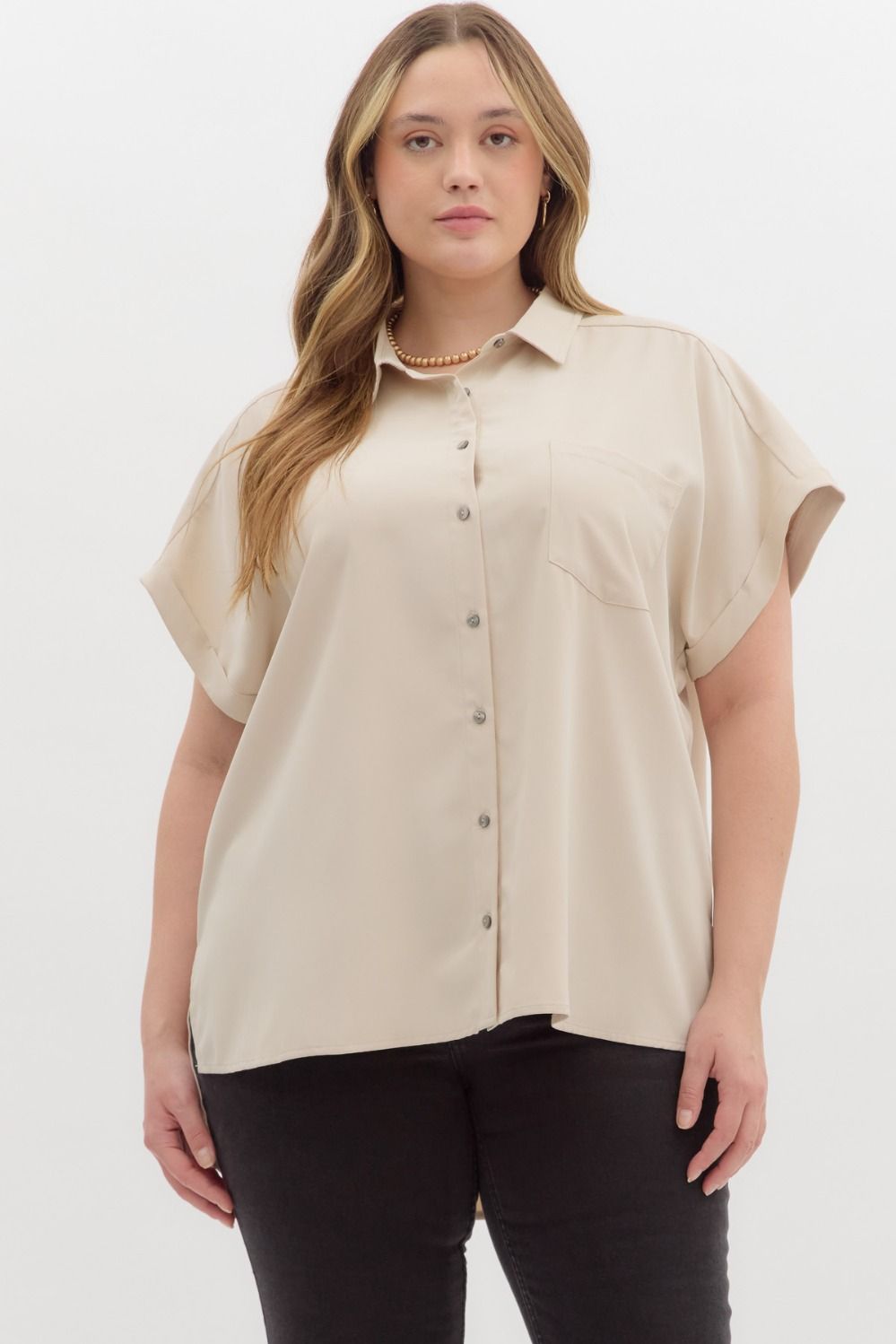 Entro Solid Button Down Collared Top In Ecru PLUS Sizes