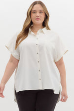 Entro Solid Button Down Collared Top In Off White PLUS Sizes