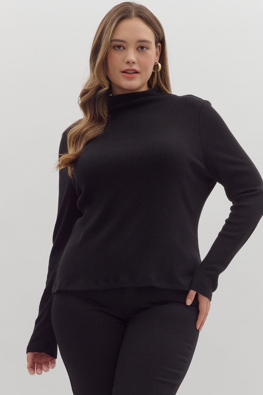 Entro Solid Long Sleeve Ribbed Sweater Knit Top In Black PLUS Sizes