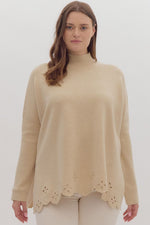 Entro Solid Mock Neck Sweater With Floral Trim In Oatmeal PLUS Sizes
