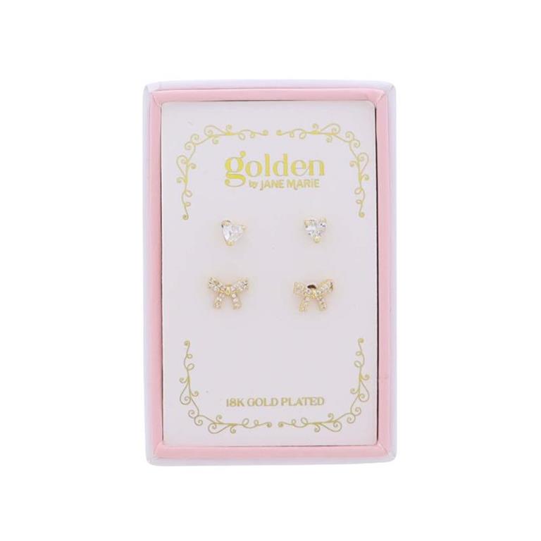 Jane Marie Girls 18K Gold Plated Set of 2 Earrings