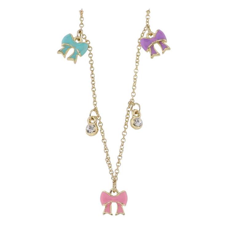 Jane Marie- Kids Gold Cable Chain Necklace with Multi Bows & Crystals