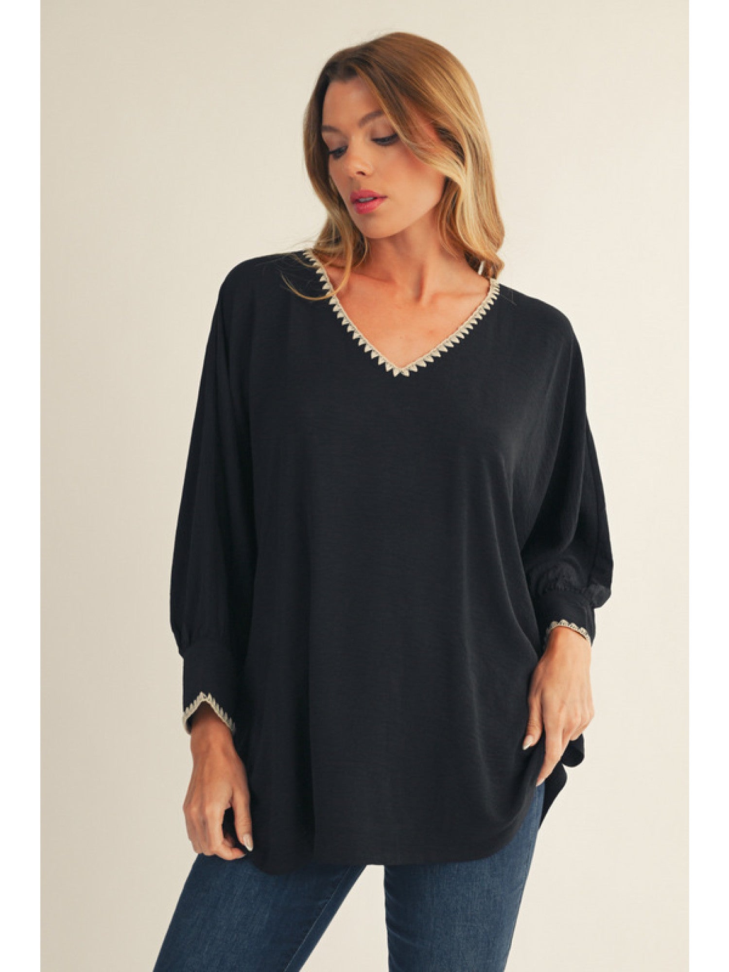Jodifl Drop Shoulder Top With Stitch Detail In Black