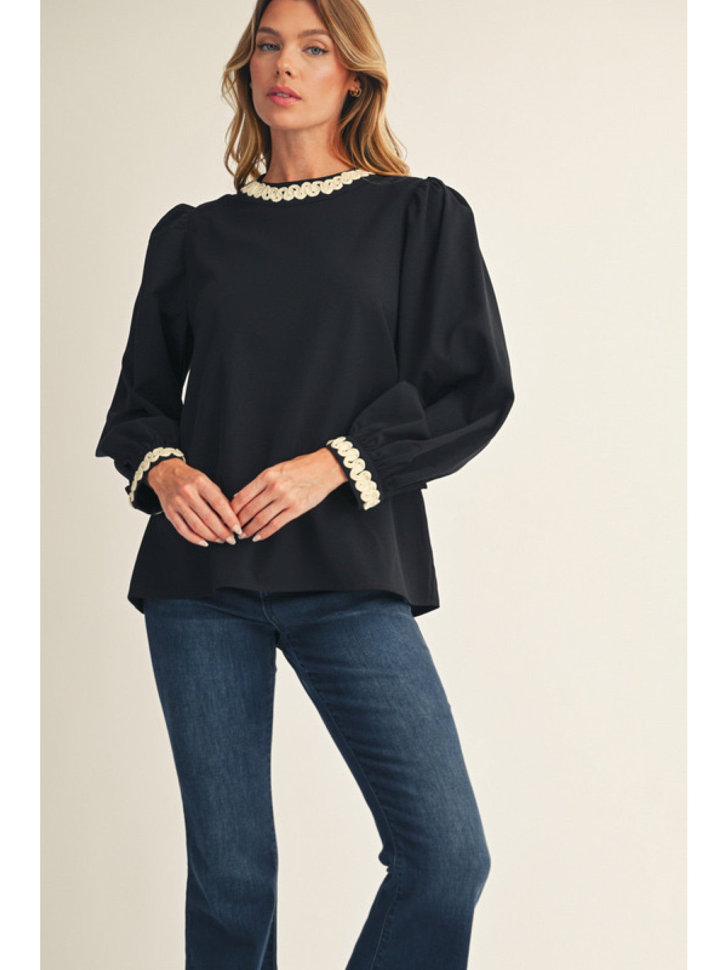 Jodifl Long Sleeve Top With 3D Trim In Black