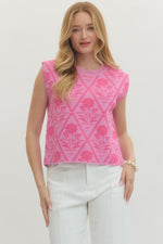 ENTRO Diamond Knit Sleeveless Top In Pink