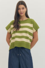 Entro Short Sleeve Knit Top With Bold Stripes In Matcha