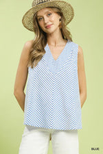 Umgee Mixed Stripe Sleeveless V Neck Top In Blue