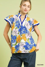 Umgee Bold Floral Top With Contrast Trim In Blue Mix