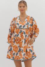 ENTRO 3/4 Sleeve Floral Mini Dress In Amber