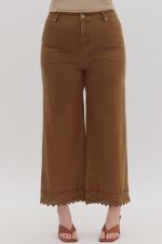 ENTRO Embroidered Hem High Waist Pant In Brown IN PLUS Sizes