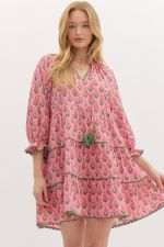 ENTRO Floral Print 3/4 Sleeve Mini Dress