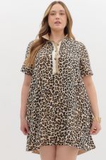 ENTRO Leopard Print Pullover Mini Dress In Camel IN PLUS Sizes