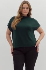 Entro Solid Knit Mock Neck Top PLUS Sizes In Hunter Green