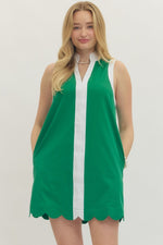 ENTRO Solid Scalloped Hem Dress In Green *COMING SOON*