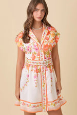 Main Strip Floral Lapel Button Down Collar Mini Dress