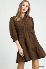 Umgee Ruffle Trim Textured Babydoll Dress In Brown PLUS Size
