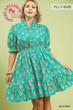 Umgee Ruffled Floral Babydoll Dress In Jelly Mint PLUS Sizes