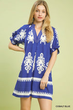 Umgee Two Toned Border Print Mini Dress In Colbalt Blue *COMING SOON*