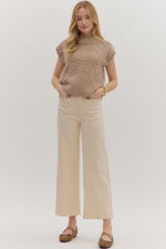 Entro Solid High Waist Pants With Scalloped Pocket And Hem In Ecru