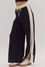 Entro Solid Wide Leg Knit Pants With Contrast Stripe In Black