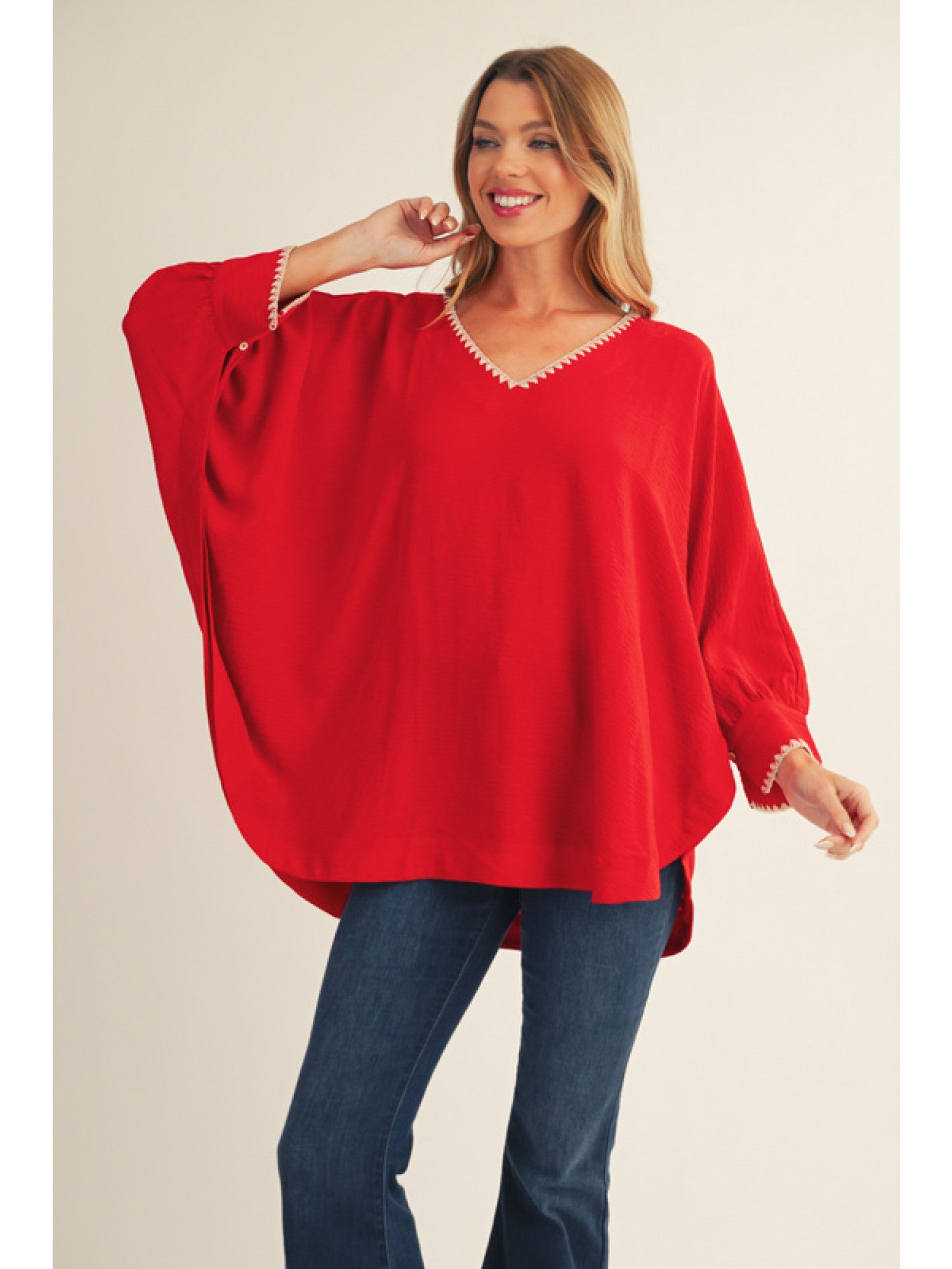 Jodifl Drop Shoulder Top With Stitch Detail In Red