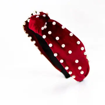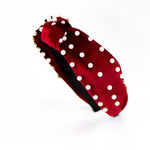 The Royal Standard-Pearl Knotted Velvet Headband Red/White