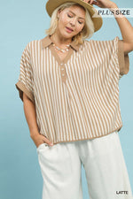 Umgee Striped Collar Oversized Top In Latte PLUS Sizes *COMING SOON*