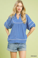 Umgee Textured Top With Contrast Trim In Peri Blue *COMING SOON*